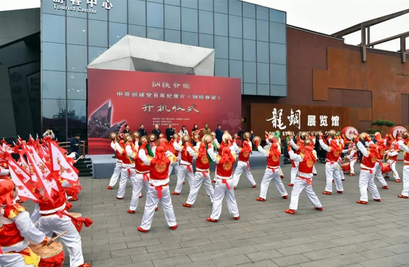劉娜在儀式上宣布《鋼鐵脊梁》紀(jì)錄片正式開(kāi)機(jī),陳玉千、劉娜和楊海峰共同為《鋼鐵脊梁》紀(jì)錄片開(kāi)機(jī)揭幕,與會(huì)人員還共同觀看了龍鋼公司龍門鋼鐵行鼓隊(duì)表演的威風(fēng)鑼鼓。