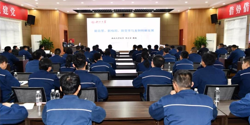 簽約儀式后,郭立宏還從“新背景、新格局、新變革、新未來”四個方面為與會人員做了一堂精彩紛呈的授課,深入淺出地對全球經(jīng)濟(jì)發(fā)展進(jìn)行了深刻剖析,對鋼鐵行業(yè)形勢和人才建設(shè)進(jìn)行了分析解讀。并結(jié)合龍鋼公司實(shí)際,為企業(yè)發(fā)展提出了建設(shè)性意見和建議。