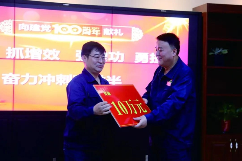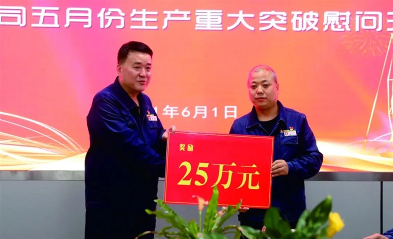 公司黨委書記、董事長陳驍向各單位發(fā)放了生產(chǎn)重大突破和服務(wù)保障獎勵。