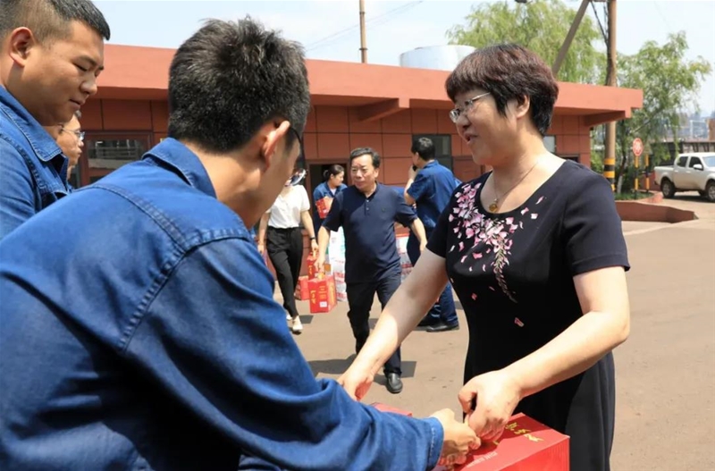 7月7日,渭南市總工會黨組書記、常務(wù)副主席侯雪靜,渭南市總工會黨組成員、副主席李詩穎,韓城市總工會常務(wù)副主席李養(yǎng)義一行來公司一線慰問送清涼。公司黨委委員、工會主席趙春棠及相關(guān)部門負責人參加慰問。