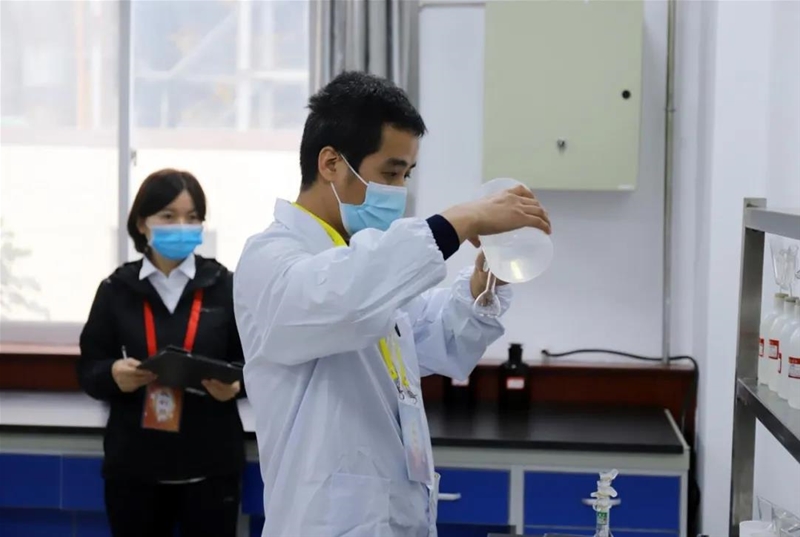分析化驗(yàn)工的實(shí)操考核內(nèi)容包括EDTA標(biāo)準(zhǔn)溶液的配制和生鐵酸溶硅含量測定兩部分。整個(gè)過程中,選手們注意力高度集中,操作細(xì)節(jié)不容許絲毫大意,準(zhǔn)確的稱量、精確的藥品用量、嚴(yán)謹(jǐn)?shù)闹茦?、穩(wěn)如泰山的移液……各顯身手,展絕技,亮絕活。