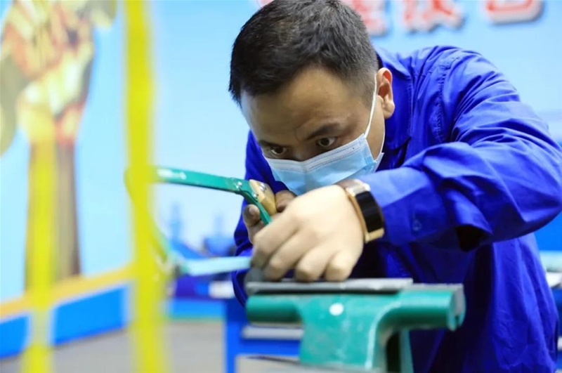 在維修鉗工培訓(xùn)基地,各參賽選手斗志昂揚(yáng)、躍躍欲試,紛紛拿起各自工具,仔細(xì)測量,精確切割,精心打磨,精雕細(xì)琢,一時(shí)間,搓、鋸、削、鉆各種聲音此起彼伏,合奏出一曲令人震撼的交響樂。