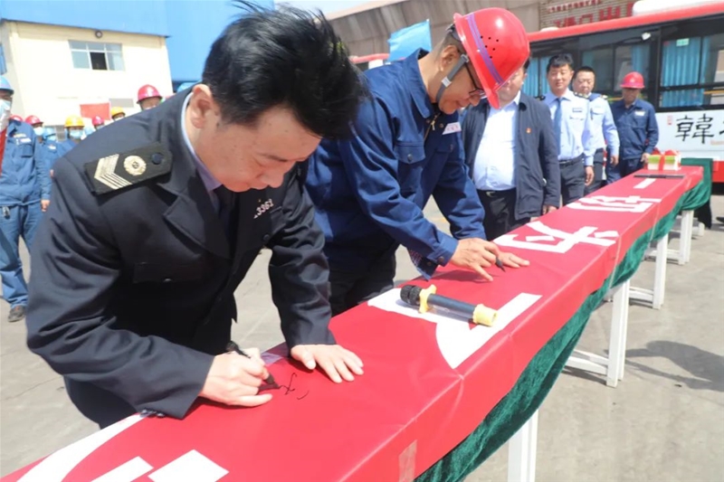 王建軍代表公司向韓城市衛(wèi)計(jì)執(zhí)法大隊(duì)及廣大職工做出承諾:一是加強(qiáng)制度建設(shè),持續(xù)完善職業(yè)病防治責(zé)任體系;二是規(guī)范職業(yè)病危害檢測(cè)和評(píng)價(jià),做好職業(yè)病危害治理;三是強(qiáng)化培訓(xùn)教育,嚴(yán)格落實(shí)職業(yè)健康監(jiān)護(hù);四是如實(shí)申報(bào)和告知職業(yè)病危害,保障職工合法權(quán)益。