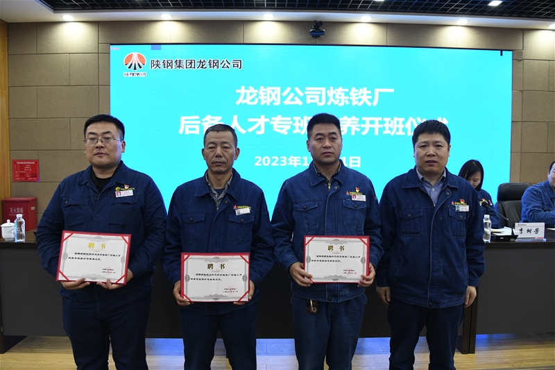 儀式上,宣讀了《煉鐵廠后備人才培養(yǎng)專班實施方案》,學習了視頻《梯隊建設與團隊執(zhí)行》,專班班主任、學員代表進行了表態(tài)發(fā)言。同時為三名專班班主任頒發(fā)了聘書。
