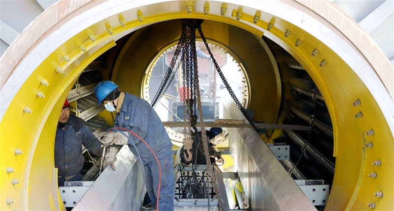 “我用鐵錘敲打,你用扳手使勁。”“師傅,搭把手!一二,一起用力……”在他們的齊心協(xié)力配合下,一顆顆螺栓掉落在地的聲音猶如天籟之音。他們合力拆卸、吊運、更換,各司其職,團結協(xié)助此刻在這里得到了充分體現(xiàn)。