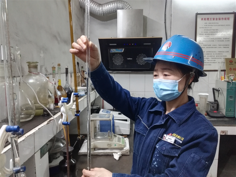 榮獲陜鋼“好媳婦”榮譽(yù)的黨朝陽(yáng)平日既要照顧八十多歲的公公、婆婆,還得料理好自己的小家。但她的工作也干得有聲有色、毫不馬虎。這會(huì)她正在忙著化驗(yàn)水質(zhì),剛接班,只見(jiàn)操作臺(tái)上擺滿了從轉(zhuǎn)爐、連鑄各個(gè)泵房取來(lái)的二冷水、結(jié)晶器水、除塵水水樣,她忙而不亂、井然有序地操作化驗(yàn)器具,一會(huì)在濁度儀上監(jiān)測(cè)水質(zhì)濁度,一會(huì)用酸度計(jì)測(cè)量PH值,一會(huì)又忙著測(cè)水中懸浮物、含油量、磷酸根……