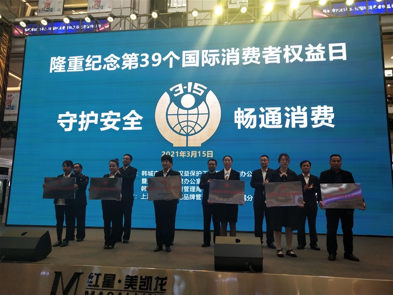 3月15日,韓城市舉辦2021年“3.15” 國際消費者權益日紀念宣傳活動,為全市36家放心消費示范代表單位進行了授牌。龍鋼綜合服務公司作為獲獎單位之一,榮獲2020年度“韓城市放心消費示范單位”殊榮,并受到了表彰。