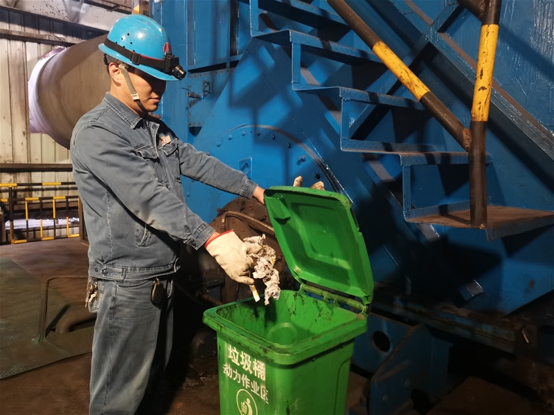 在之前的檢修作業(yè)中,檢修過程產(chǎn)生的廢棄垃圾、擦拭設備油污所用到的棉紗、工業(yè)擦拭紙等被放置在現(xiàn)場,不僅影響環(huán)境,而且有火災隱患風險。為了解決這個問題,除塵維修鉗工班制作了作業(yè)現(xiàn)場垃圾桶,將每次定修、檢修之后產(chǎn)生的垃圾直接放進垃圾桶里,等作業(yè)完成之后統(tǒng)一拉走處理,不僅使現(xiàn)場環(huán)境更加整潔,而且消除了油污火災隱患。