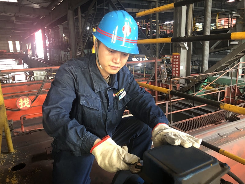 精整跨天車可以稱得上是“火焰山”了,下方不到10米的位置,根根紅鋼坯如同火龍一般涌動(dòng),產(chǎn)生的熱浪如同澆過水的“桑拿房”。爬上天車,熱浪迎面而來,天車跨道、護(hù)欄都散發(fā)著讓人難以承受的熱量,使人悶熱難耐。只見點(diǎn)檢員小張一手掩著臉,一手扶著燒燙的防護(hù)欄桿,認(rèn)真觀察著設(shè)備的每一個(gè)細(xì)節(jié),不放過一絲一毫異常。腳踩著被烤得炙熱的鐵板,后背已經(jīng)濕透,汗水順著鬢角流了下來,他不時(shí)用手擦下汗,剛毅的眼神卻緊盯著制動(dòng)器每一個(gè)部位。