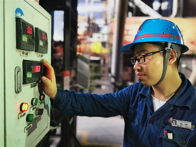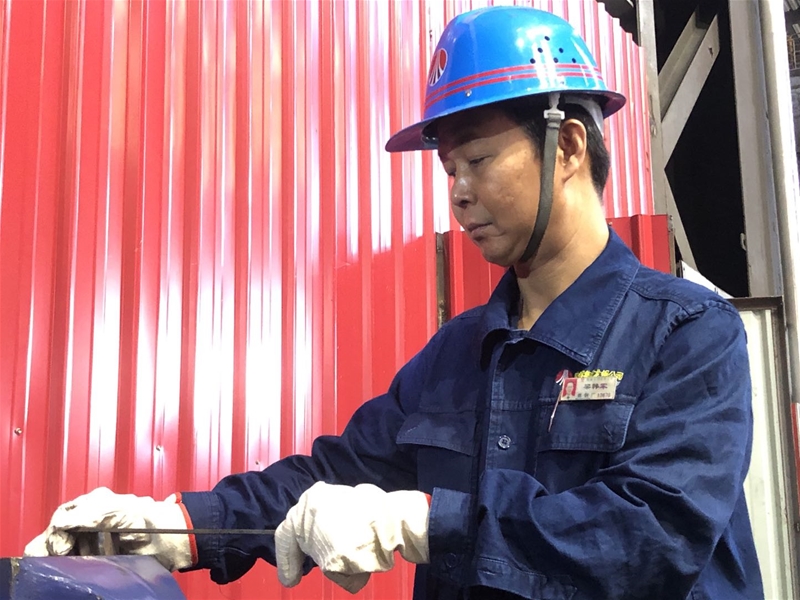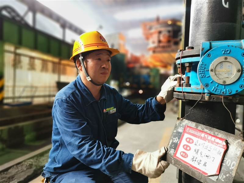 圖三:煉鋼廠連二作業(yè)區(qū)安全員張保銀正在檢查煤氣設(shè)備,現(xiàn)場的溫度持續(xù)攀升,汗珠順著他的臉頰滾落,但是他始終牢記自己的職責(zé)與使命,不放過任何一個細(xì)節(jié),用實 際行動踐行著自己的安全誓言。