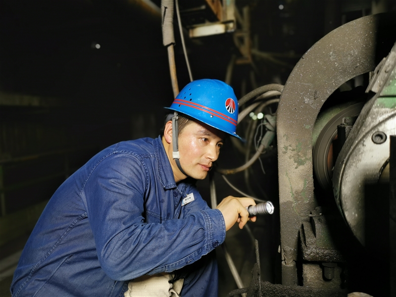 圖十:煉鋼廠連二作業(yè)區(qū)安檢員郭云峰正在對連鑄振動系統(tǒng)進(jìn)行點檢。大負(fù)荷照明燈的強光打在他的臉龐上,他一個點一個點地仔細(xì)檢查著,一顆顆滾落的汗珠里,包裹的都是他對設(shè)備的精心。