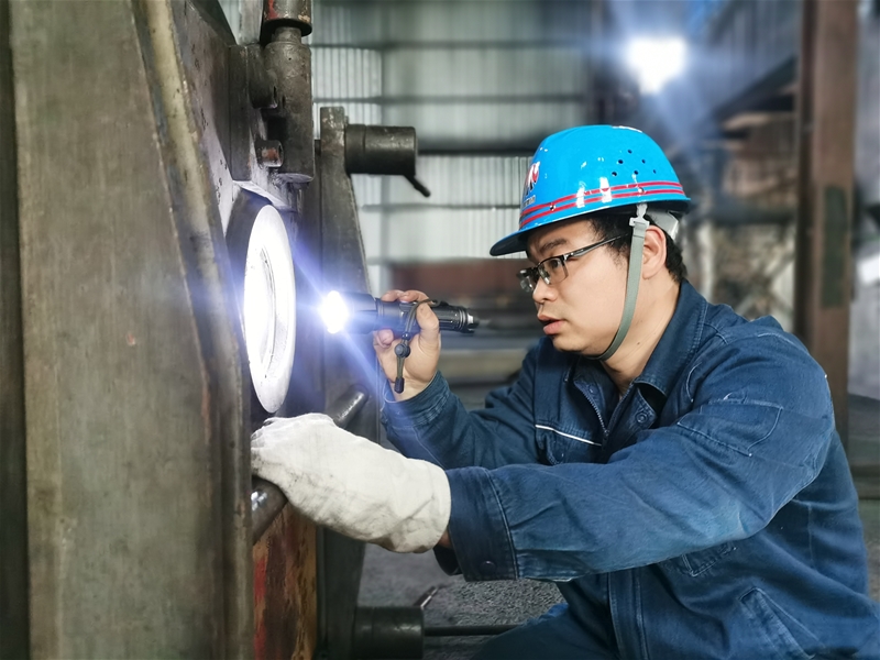 功夫不負(fù)有心人。最終,他發(fā)現(xiàn)是蓄能器壓力不足的問題。隨后對(duì)蓄能器進(jìn)行加壓調(diào)試,磨機(jī)最終恢復(fù)正常。“遇到問題不要怕,我們要沉下心來,逐一排查,沒有解決不了的問題,只是沒有找到正確的方法。”在噴煤工段班組學(xué)習(xí)會(huì)上,李鑫分享道。