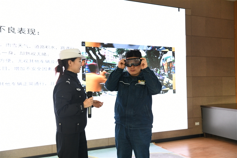 此次培訓邀請韓城市公安局交警中隊資深民警進行授課。她從交通事故數(shù)據(jù)和視頻切入,結合實際案例,講解事故危害,并進行事故成因與違法后果剖析,以案說法深入淺出地解讀了相關交通安全法規(guī),提升了全員遵章守法和依法安全行車意識。同時,她結合安全行車實際,利用事故展板、現(xiàn)場VR眼鏡模擬醉酒駕駛等方式與參培人員互動,讓參培人員通過現(xiàn)場模擬掌握冬季行車安全隱患,特別是雨雪天控距、霧天用燈等安全駕駛技巧與應急處理方法,進一步鞏固加深了駕駛員對交通安全的理解,普及了交通安全知識。培訓最后,還進行了知識測試,以考促學,鞏固學習成效。
