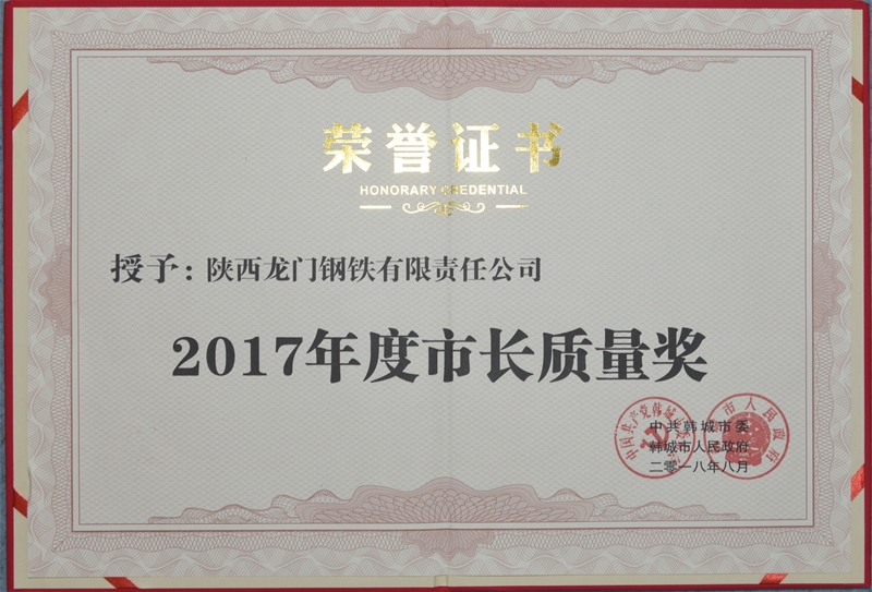 市長質(zhì)量獎證書 陜西省質(zhì)量標(biāo)桿獎牌