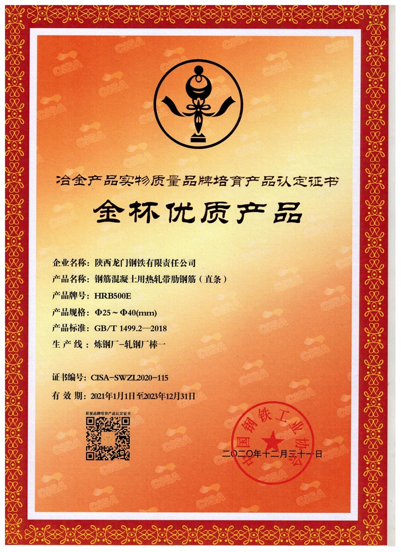 金杯優(yōu)質(zhì)產(chǎn)品證書