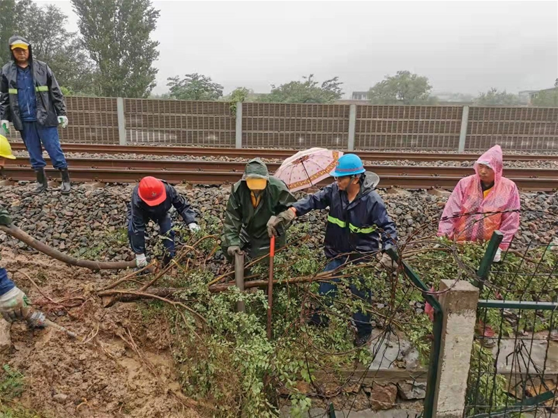 圖五:公司搶險突擊隊員及救援車輛正趕往新站臺護坡處進行現(xiàn)場救援,在確保工業(yè)站鐵路線正常運行的同時,不影響正線有序通行。