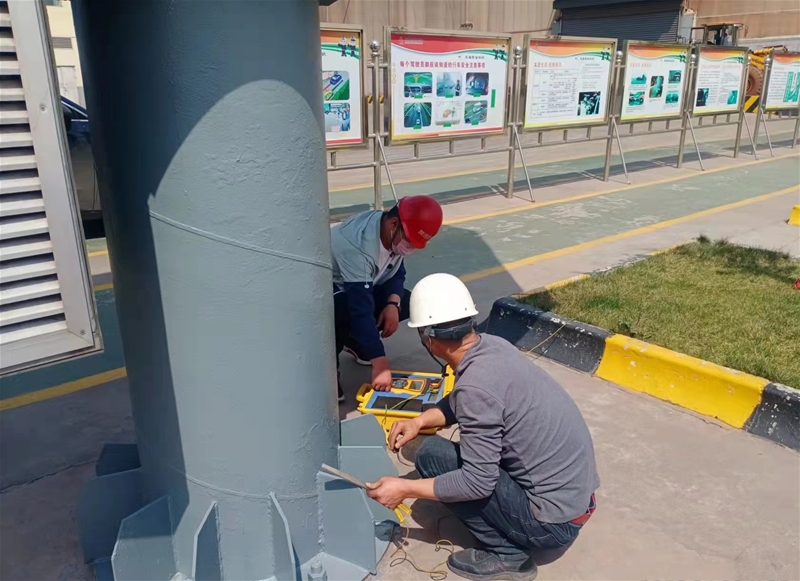 此次檢測(cè),嚴(yán)格執(zhí)行防雷技術(shù)規(guī)范和檢測(cè)程序,共繪制完善防雷接地示意圖63張,對(duì)公司家屬樓、廠區(qū)所有廠房、煤氣柜、煤氣管網(wǎng)、加油站、變電站及通訊機(jī)房等設(shè)備設(shè)施進(jìn)行了全面檢測(cè)。經(jīng)檢測(cè),各建筑物及設(shè)施設(shè)備均符合防雷要求。此次防雷檢測(cè)有效降低了雷雨季節(jié)設(shè)施設(shè)備的運(yùn)行風(fēng)險(xiǎn),為公司在雷雨季節(jié)安全運(yùn)行奠定了堅(jiān)實(shí)基礎(chǔ)。