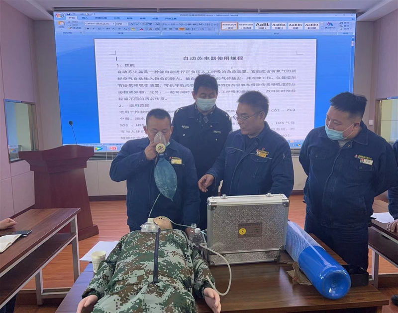 “自動(dòng)蘇生器是一種能自動(dòng)進(jìn)行正負(fù)壓人工呼吸的救援裝置,它能把含有氧氣的新鮮空氣自動(dòng)輸入傷員肺內(nèi)。”氣體防護(hù)中心副主任、注冊(cè)安全工程師呂永剛從自動(dòng)蘇生器的性能、適用范圍、工作原理、操作要領(lǐng)、使用注意事項(xiàng)、日常檢查和維護(hù)六方面,進(jìn)行了深入淺出地講解和演示,并結(jié)合救援實(shí)際案例,用通俗易懂的語言,為參培人員講解應(yīng)急救援處置的基本技能、救援要點(diǎn)和注意事項(xiàng)。