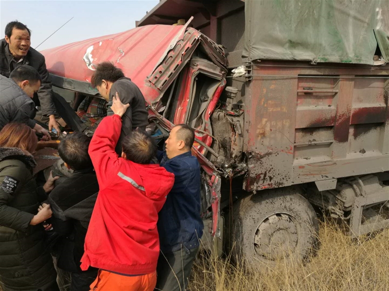 2017年11月的一天,他和同事出差前往山西省河津市對高鈣灰進行市場調研。返回途中,他發(fā)現(xiàn)兩輛車因交通事故導致司機被擠壓在駕駛室內,一人已經(jīng)昏迷,另一人雙腿無法動彈,頭部正在流血。他當機立斷,喊了一嗓子“停車,趕快幫忙救人!”