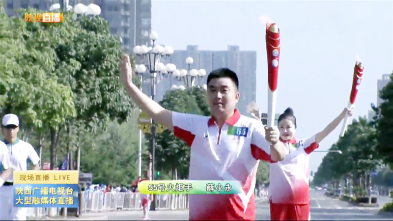 陜鋼集團形象代言人、陜鋼集團工會副主席、龍鋼公司煉鋼廠主任技師薛小永作為韓城站第55號火炬手,在韓城市礦馨園小區(qū)東南側(cè)與復(fù)興路十字北路段進行了火炬?zhèn)鬟f。