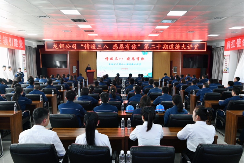 3月8日,在這個特殊的日子,陜鋼龍鋼公司第二十期道德大講堂在煉鋼廠三樓多功能廳開講,本次道德大講堂主題是“情暖三八 感恩有你”。機關各部門、各基層單位黨組織負責人、政工人員及女職工代表參加。