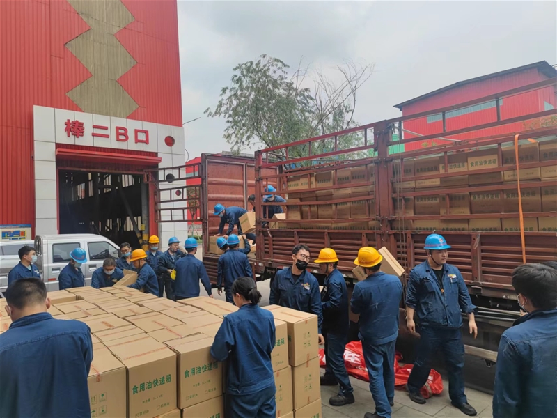 發(fā)放現場氣氛熱烈,大家配合默契,各負其責,喜悅之情溢于言表,員工歸屬感和獲得感不斷增強。當大家接過一箱箱產品時,內心深深地感受到公司黨政的關愛和溫暖。并紛紛表示,感謝公司的關懷,將立足崗位、苦干實干,堅決打贏降本增效攻堅戰(zhàn),為公司高質量發(fā)展貢獻力量。
