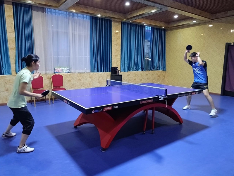 “今晚約個球,有沒有人?”“有,一會到。”自8月份開始,每天晚上7點,禹龍賓館乒乓球室就會傳來一片歡聲笑語,職工們興致勃勃地聚在一起,互相切磋球技。