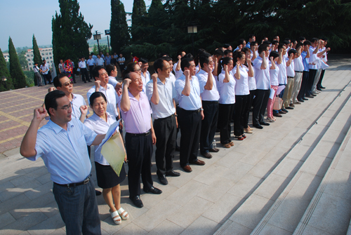 7月1日上午,為紀(jì)念中國共產(chǎn)黨建黨92年周年,陜西陜化化工集團有限公司黨委組織公司領(lǐng)導(dǎo)班子和總經(jīng)理助理、各基層黨委、黨支部書記和新黨員到紅色教育基地——華縣高塘鎮(zhèn)渭華起義革命紀(jì)念館參觀學(xué)習(xí),并面對黨旗莊嚴(yán)宣誓,以特殊的形式迎接黨的92周歲生日。