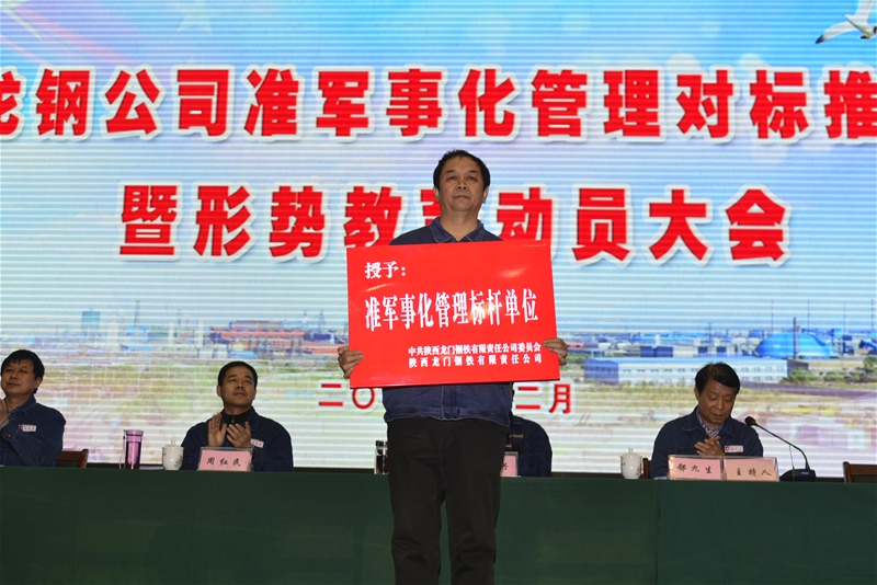 會(huì)議系統(tǒng)分析了準(zhǔn)軍事化管理工作的推進(jìn)成效及存在問(wèn)題,清晰明確了今后的努力方向;昌龍公司交流了準(zhǔn)軍事化管理的經(jīng)驗(yàn)和心得;公司準(zhǔn)軍事化管理主管領(lǐng)導(dǎo)、副總經(jīng)理?xiàng)钫倥缶蜕顚哟瓮七M(jìn)準(zhǔn)軍事化管理提出了具體要求。公司工會(huì)主席趙春棠宣讀了《關(guān)于授予昌龍公司準(zhǔn)軍事化管理標(biāo)桿單位的決定》,公司黨委副書記、董事長(zhǎng)杜東興向昌龍公司頒發(fā)了準(zhǔn)軍事化管理標(biāo)桿單位示范牌。