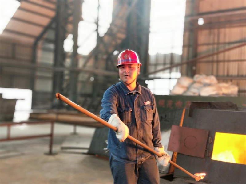 第一站來(lái)到了煉鐵廠5號(hào)高爐,在爐前班長(zhǎng)簡(jiǎn)單介紹完拍攝地點(diǎn)和安全注意事項(xiàng)后,我們正式進(jìn)入拍攝現(xiàn)場(chǎng)。首先直入眼簾的是5號(hào)高爐副爐長(zhǎng)薛永輝和爐前工人一起出鐵的火熱場(chǎng)面。爐前班長(zhǎng)王拓手持鋼釬在查看出鐵口,奔涌的鐵流猶如壺口瀑布般傾瀉而出,炙熱滾燙的鐵水烤得臉膛皮膚就像蒸桑拿一樣。只見(jiàn)薛永輝瞅準(zhǔn)時(shí)機(jī),熟練地拿起取樣勺快速取出鐵樣,穩(wěn)穩(wěn)地放進(jìn)盛樣盤中。“剛來(lái)爐前的新工根本熬不住這出鐵的高溫,經(jīng)常是一次取樣下來(lái)衣服就像雨淋一樣,喝幾大杯水,全排成汗了,這僅僅還只是不到三伏!我們多年來(lái)早就習(xí)慣了這種環(huán)境,現(xiàn)在還舍不得離開(kāi)高爐呢”旁邊一位老爐前工很爽朗地講著他的工作。看得出這些冶煉的漢子們?cè)缫呀?jīng)把這種火熱的工作當(dāng)做了生活中不可分割的一部分,他們就是高爐的守護(hù)神?吹竭@些絕美的畫面,拿著“長(zhǎng)槍短炮”的攝影愛(ài)好者們快速按下快門,用一個(gè)個(gè)鏡頭記錄著爐前工最美的瞬間。
