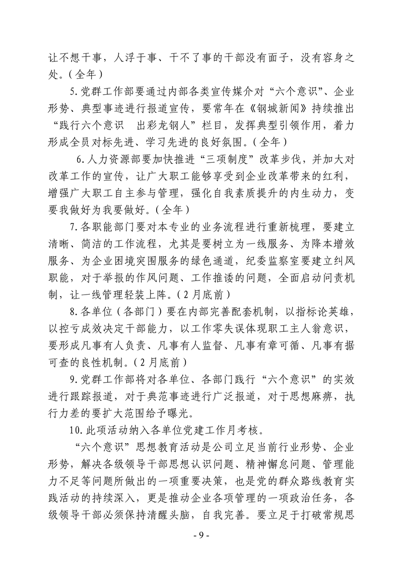 中共陜西龍門鋼鐵有限責任公司委員會 關(guān)于深入開展“六個意識”思想教育活動的通知