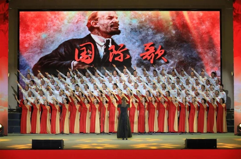 煉鐵廠合唱《國際歌》《沒有共產(chǎn)黨就沒有新中國》